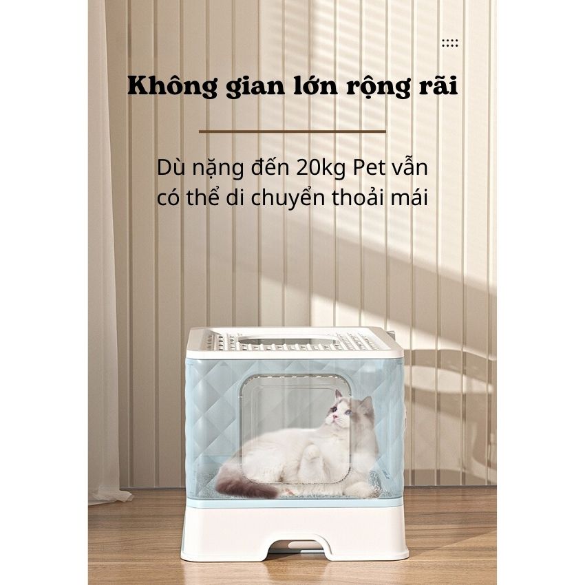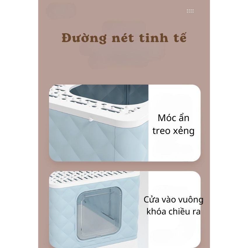 Nắp chắn cửa NHÀ VỆ SINH CHO MÈO được thiết kế kín chống bắn cát khi mèo bới cát, ngăn cho mùi thoát ra