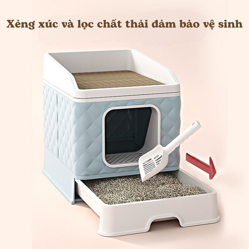 Sản phẩm: Nhà Vệ Sinh Cho Mèo Di Động Gấp Gọn Được, Bồn Vệ Sinh Cho Mèo Có Ngăn Kéo Kèm Xẻng