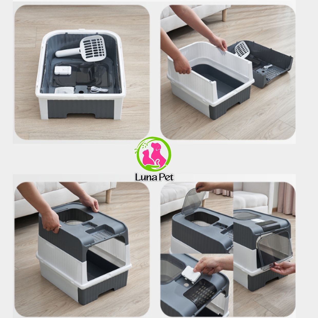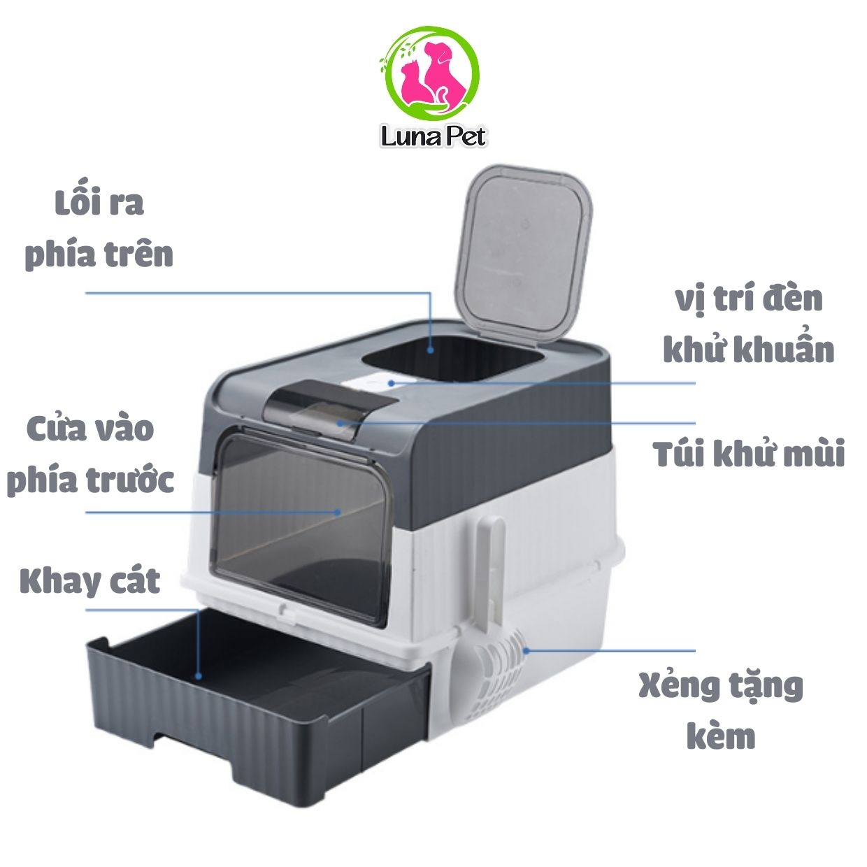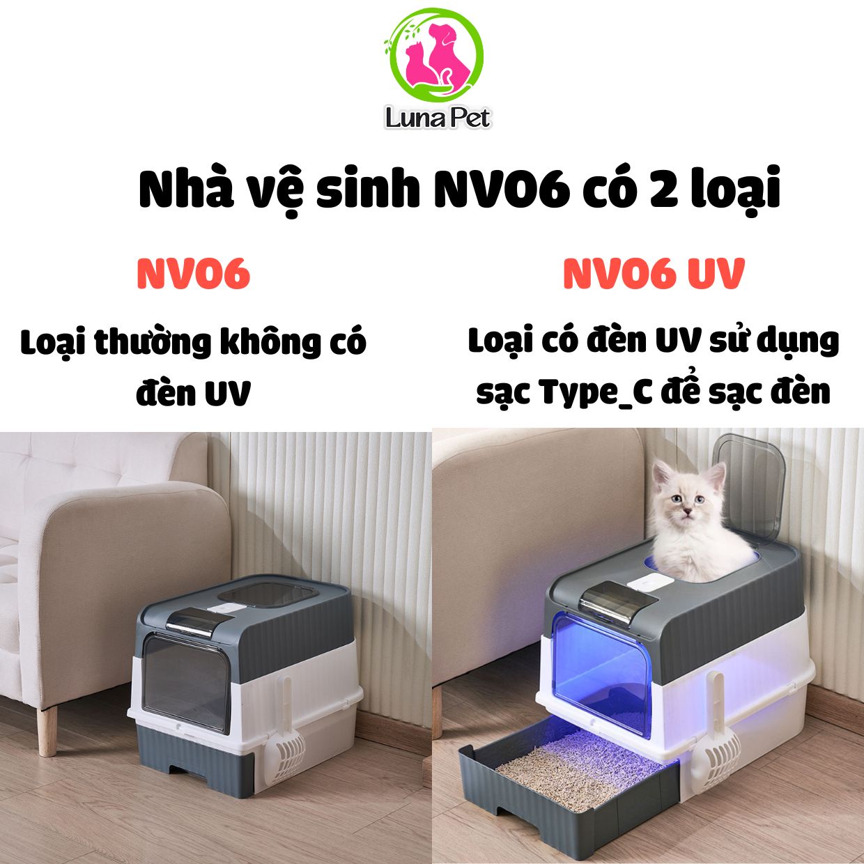 Nhà vệ sinh mèo cỡ lớn Luna Pet NV06, nhà vệ sinh cho mèo 2 cửa có đèn khử khuẩn UV