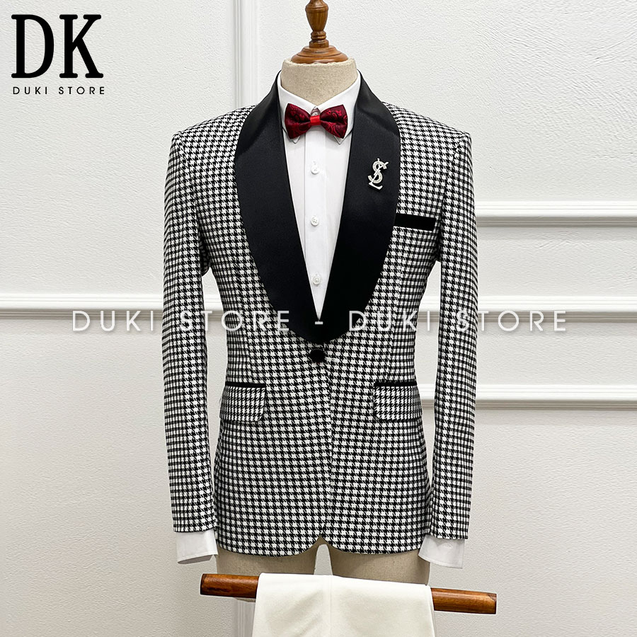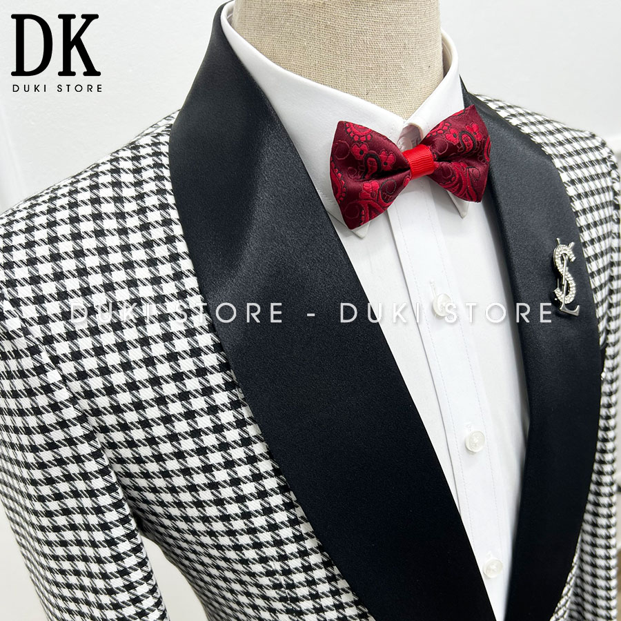 - Bộ vest nam chú rể được may chất liệu vải Tây cao cấp form dáng đứng, hàng 2 lớp bên trong có lớp lót mềm.