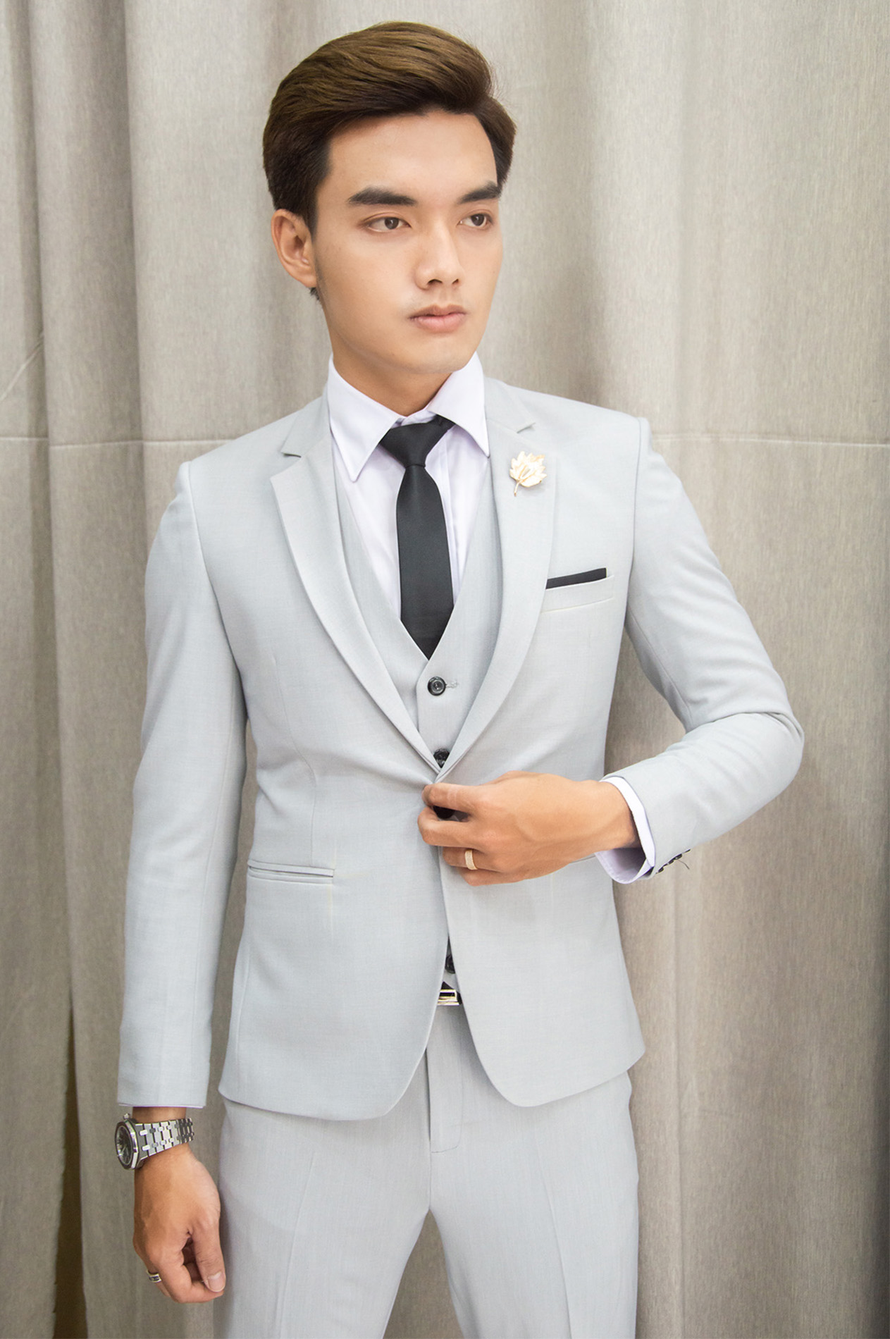 Bộ vest gồm áo vest + áo gile + áo sơ mi + quần + cà vạt + nơ + kẹp cà vạt