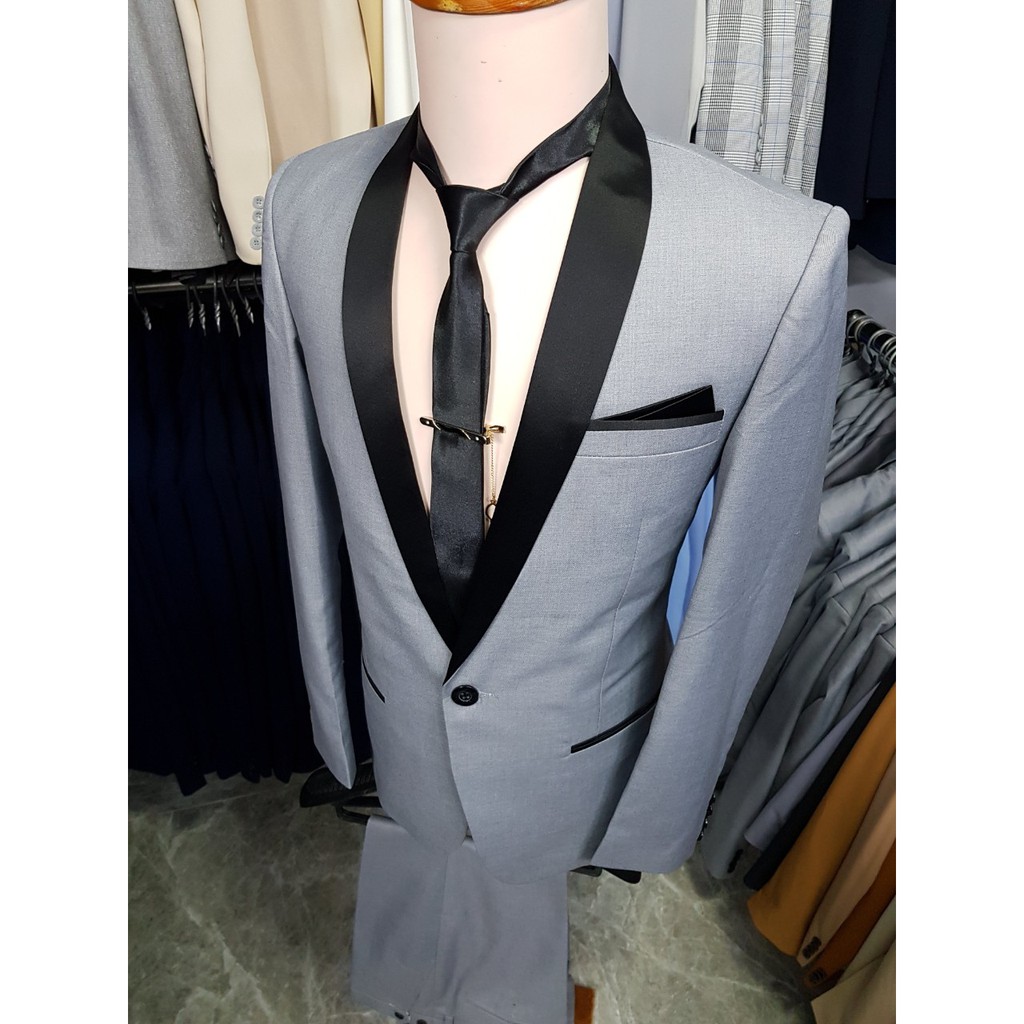 Giới thiệu Bộ vest nam phong cách hàn quốc dáng ôm body màu Xám Ghi Cổ sam đen