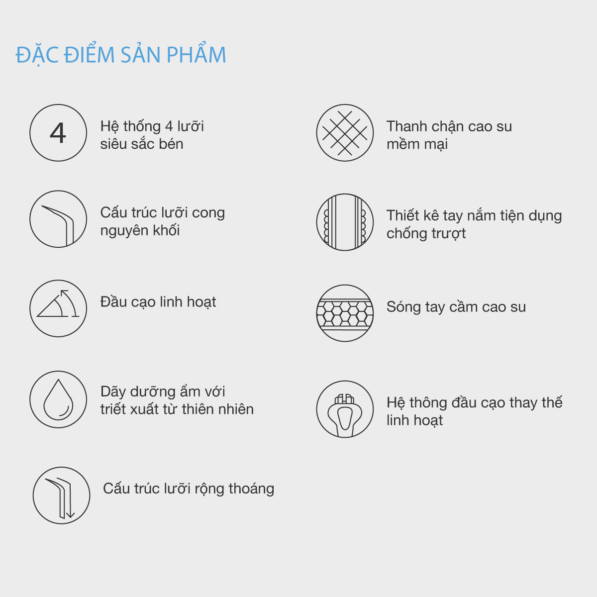 Hệ thống cạo 4 lưỡi đem đến khả năng cạo êm và hoàn hảo chỉ trong một lần cạo.