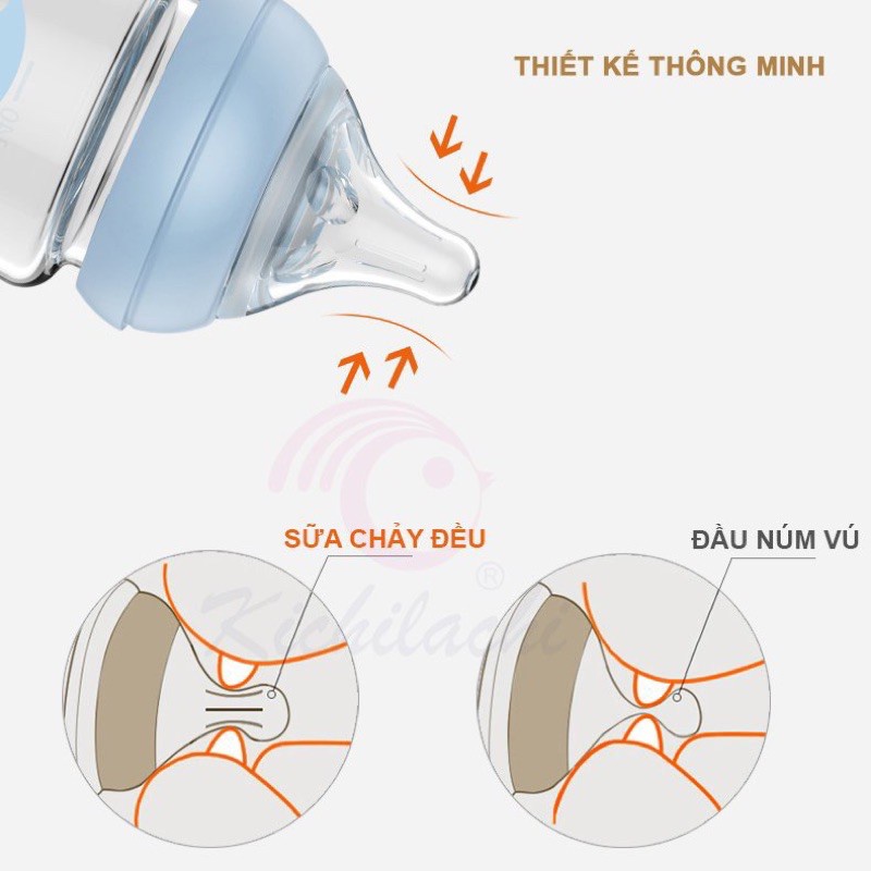 ⍣ Hệ thống van thông khí điều chỉnh áp suất không khí bên trong bình và điều tiết lượng sữa chảy ra theo nhịp điệu do bé bú, hạn chế tình trạng đầy hơi và khó tiêu của bé.