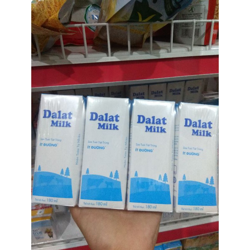 Thực phẩm và đồ uống > Sữa - trứng > Sữa > Sữa tiệt trùng || Vỉ 4 hộp 180ml sữa tươi tiệt trùng ít đường Đà Lạt Milk