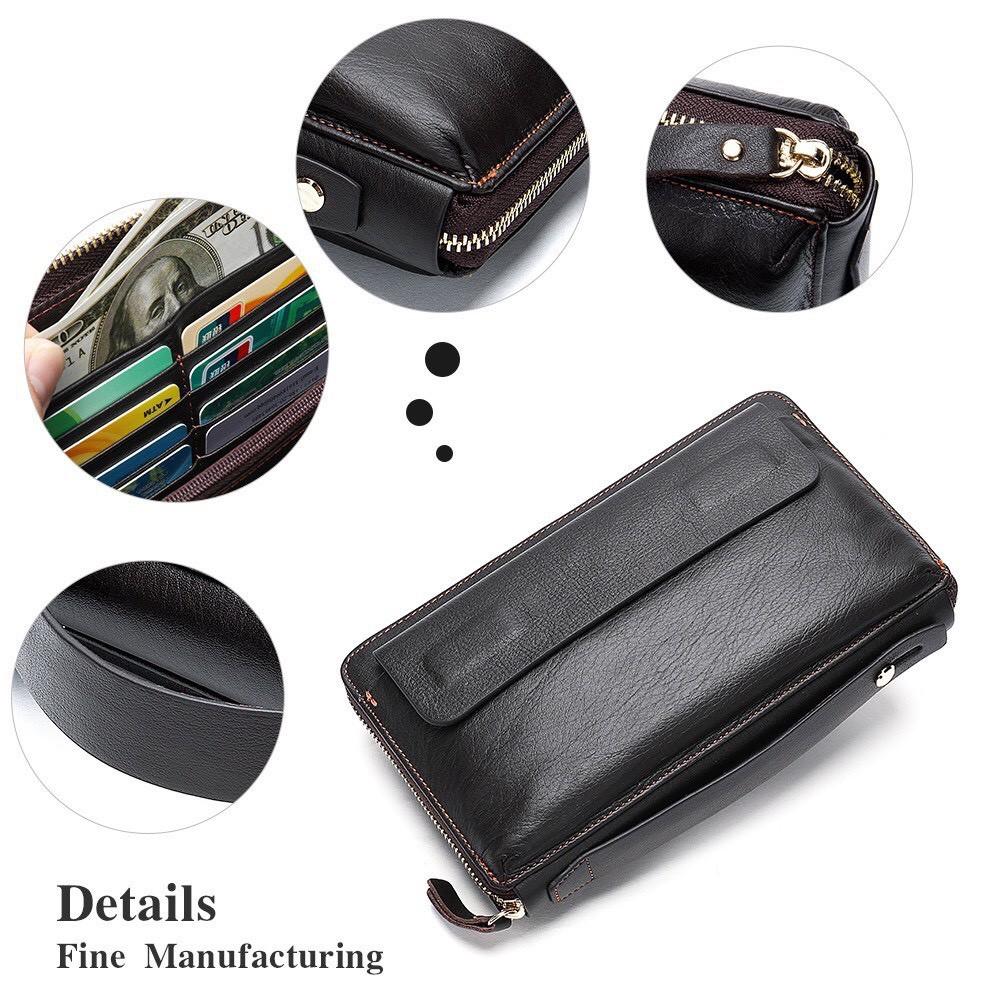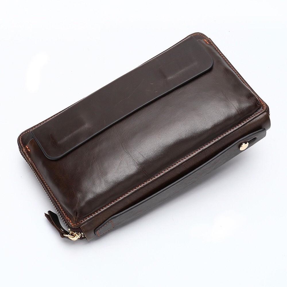 MÔ TẢ SẢN PHẨM : Ví bóp da bò cluth cầm tay da bò BA08 22x12x2.5cm (Nâu - Đen)