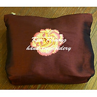 Túi mỹ phẩm thêu tay - Hoa cẩm chướng - Dài 22cm x Rộng 15cm x Cao 2.5cm - Đỏ Đậm