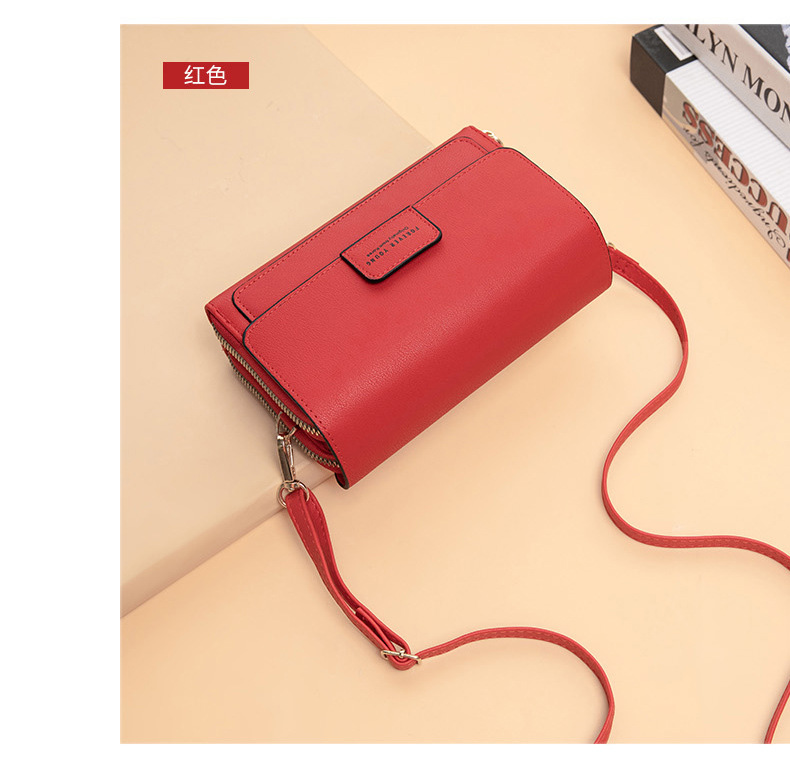 Dây kéo thiết kế ngang qua mặt túi phá cách đồng thời gắn thêm chuông dây đồng kim loại tạo điểm nhấn đầy sang trọng cho chiếc ví cầm tay.