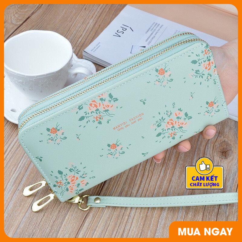 Ví Cầm Tay Nữ Dáng Dài Cầm Tay Thời Trang 2 Ngăn Khóa Phối Họa Tiết Hoa Lá Tuyệt Đẹp ST0070