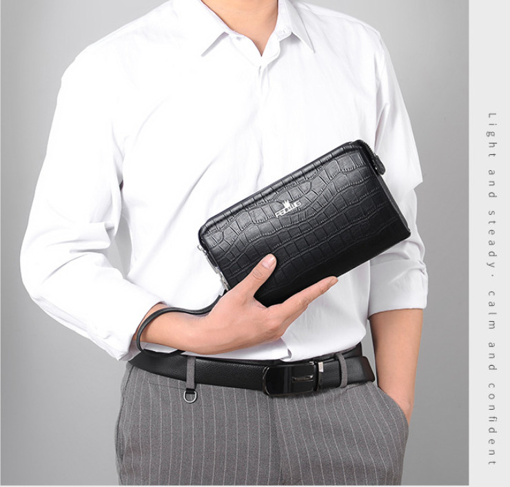 Ví cầm tay thời trang, chất liệu da thật, phong cách thời trang