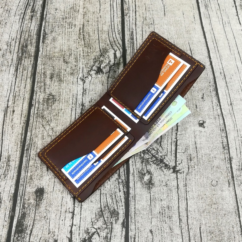 - Ví nam da bò handmade được thiết kế nhiều ngăn, có thể đựng được nhiều thẻ và các loại giấy tờ cũ mới.