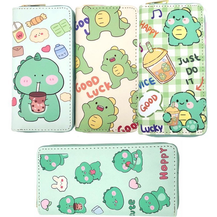 Ví da gập dài khóa kéo Gấu Xù tinh nghịch - Khủng Long Ngố - Bơ Xanh - Chó Shiba - Chó Corgi - Đàn MèoGiá ARB