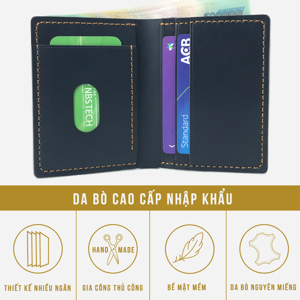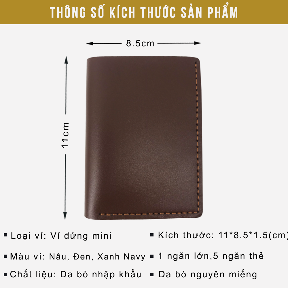 Kích thước ví nhỏ gọn bỏ vừa túi, 5 Ngăn thẻ để thẻ ngân hàng (ATM, Creditcard,) Ngăn chính để tiền và CMND loại cũ.