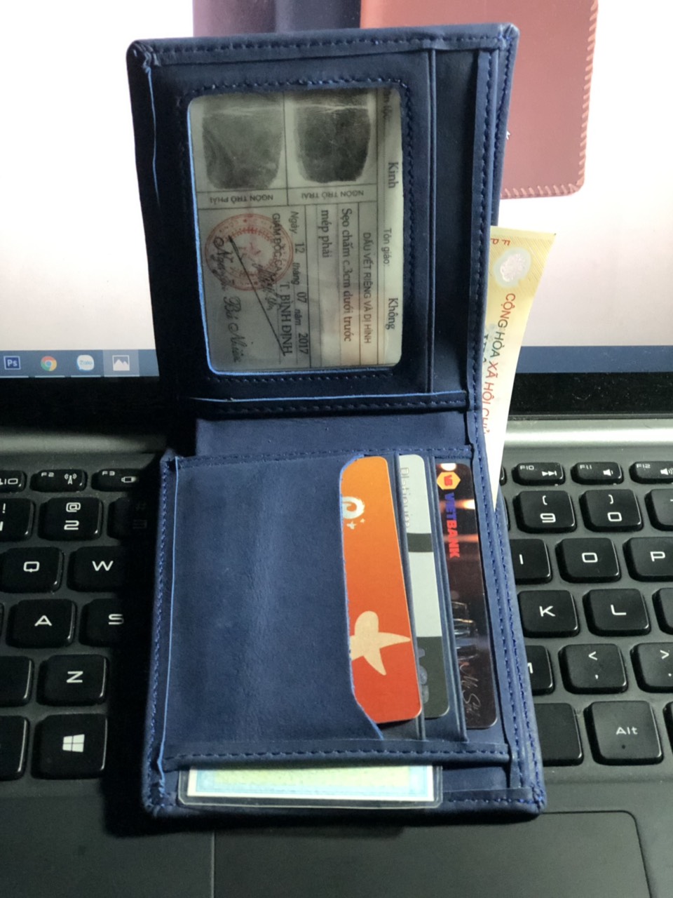 có 9 ngăn đựng thẻ, bỏ vửa chứng minh nhân dân cũ, bằng lái xe