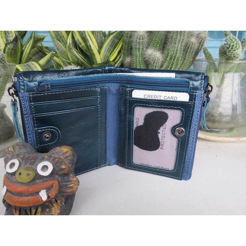 Giới thiệu Ví da sáp ngựa điên hàng Xuất (màu xanh)- mẫu ví đứng cao cấp.VC101XANH