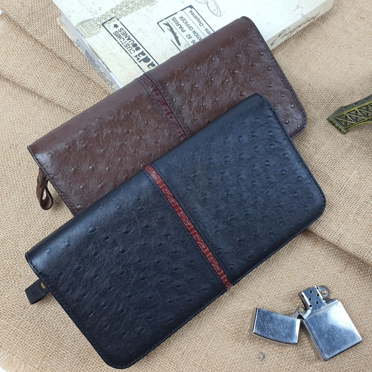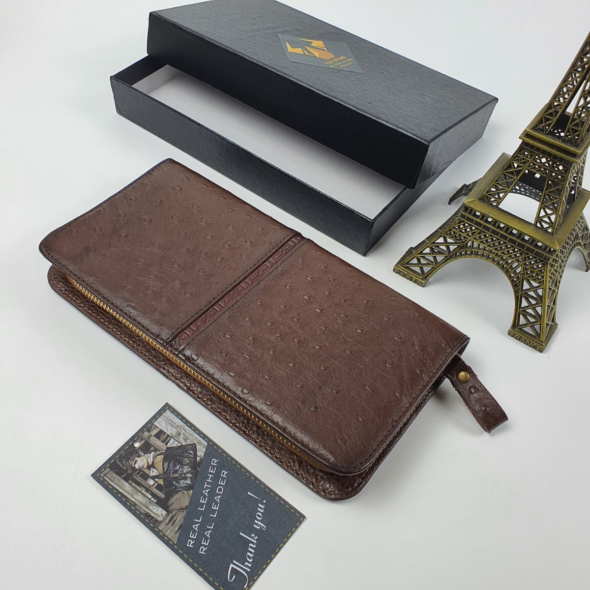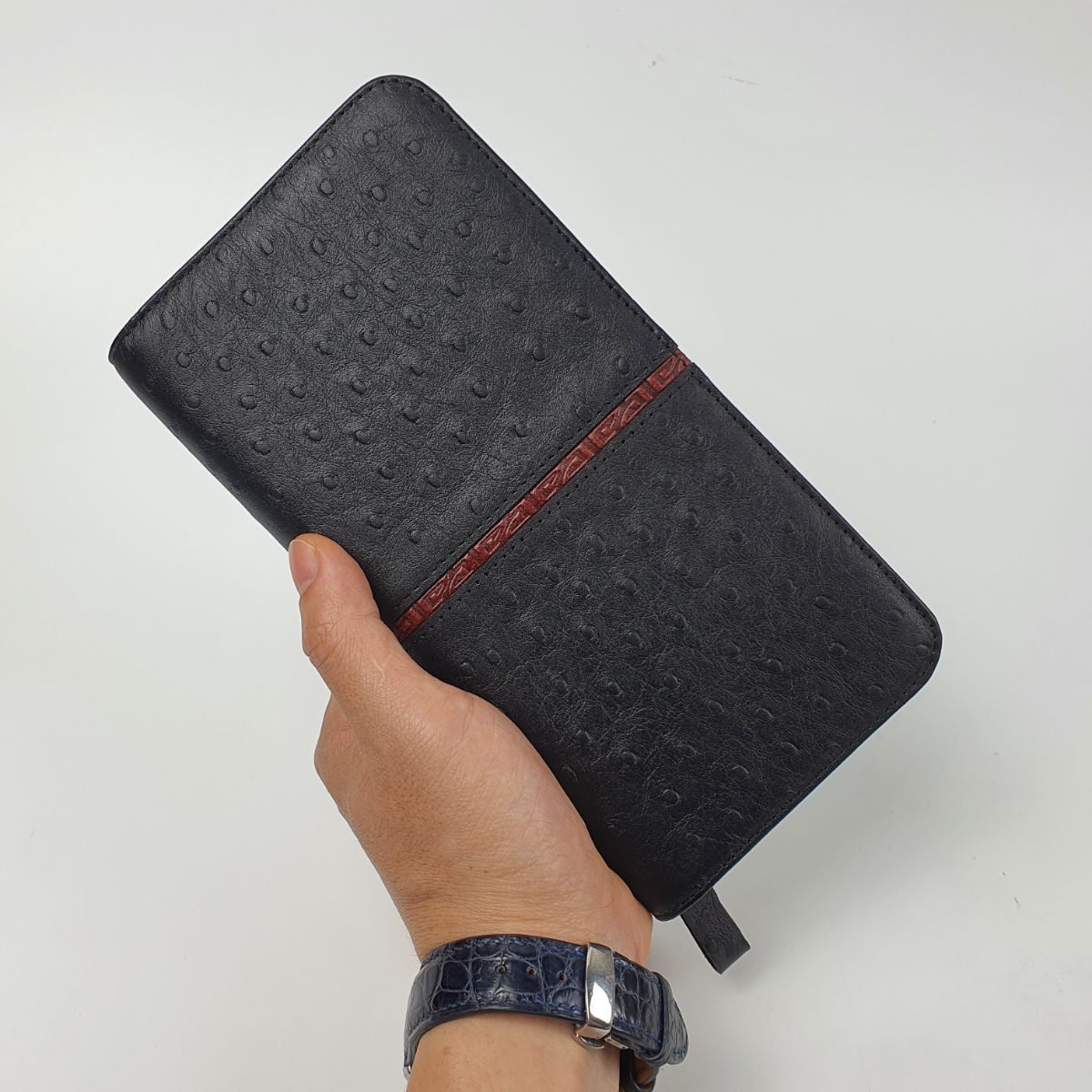 Ví cầm tay unisex da bò thật vân đà điểu