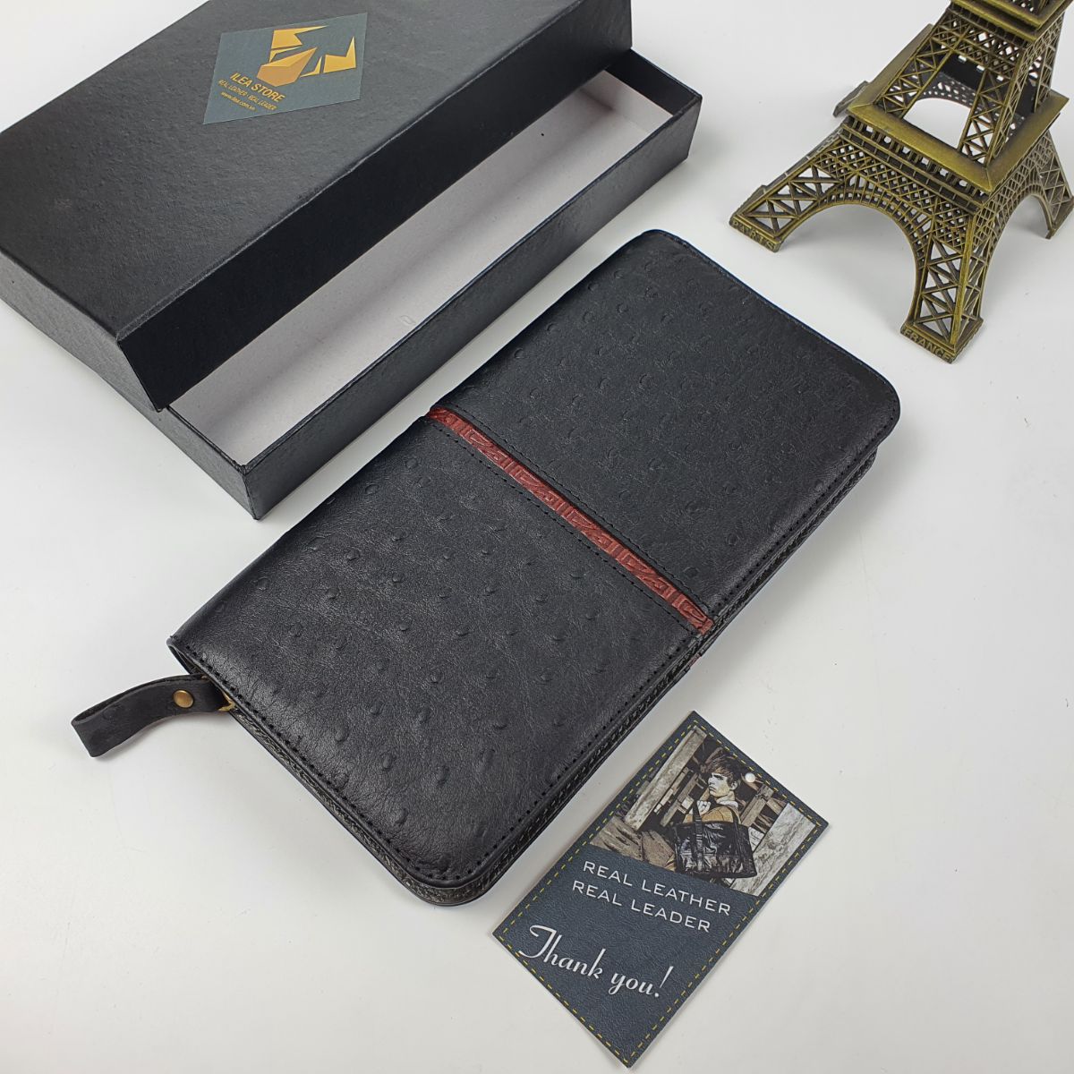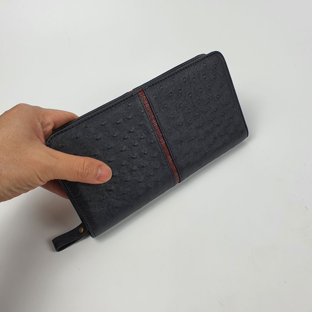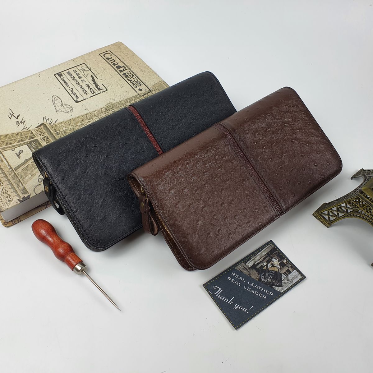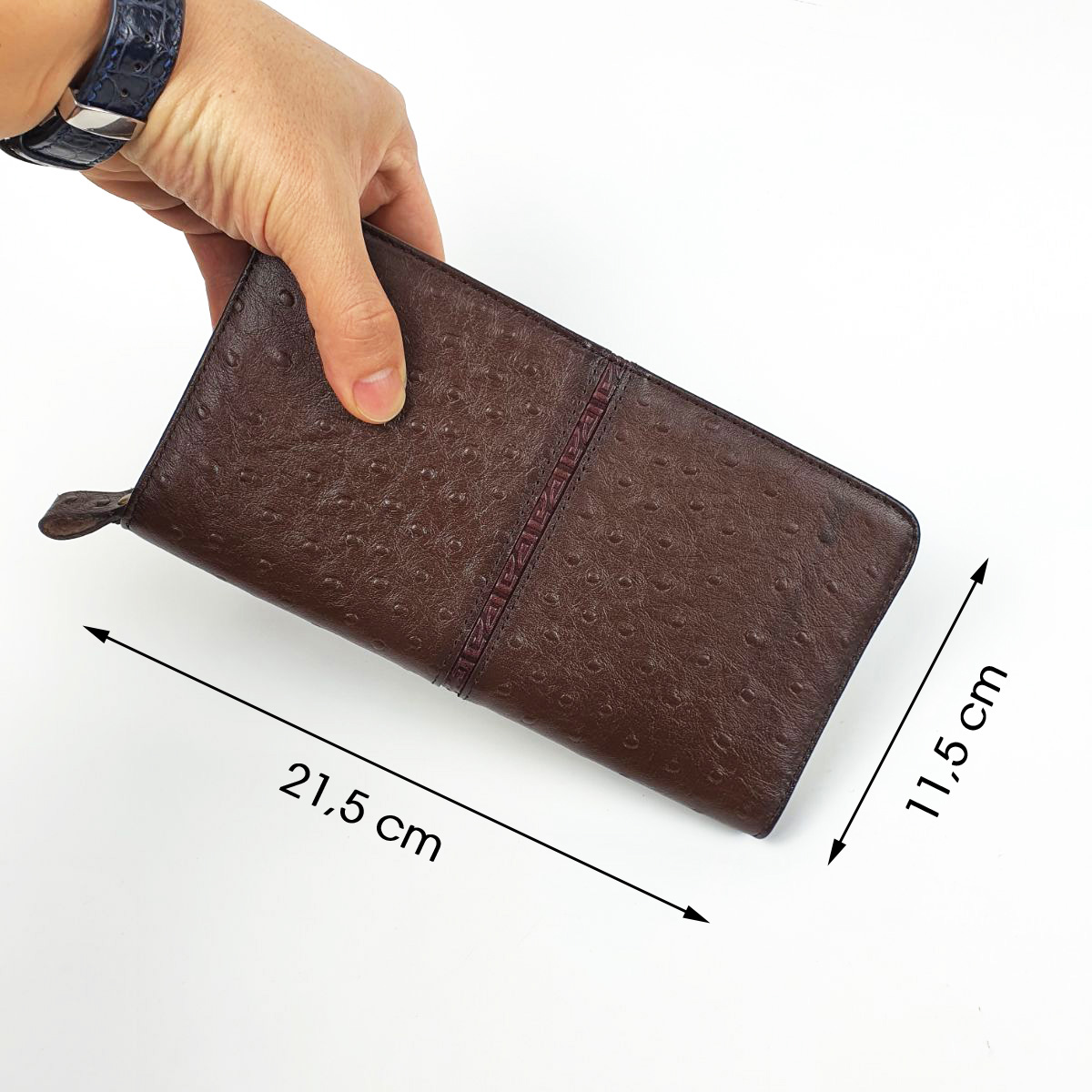 Ví cầm tay unisex da bò thật vân đà điểu