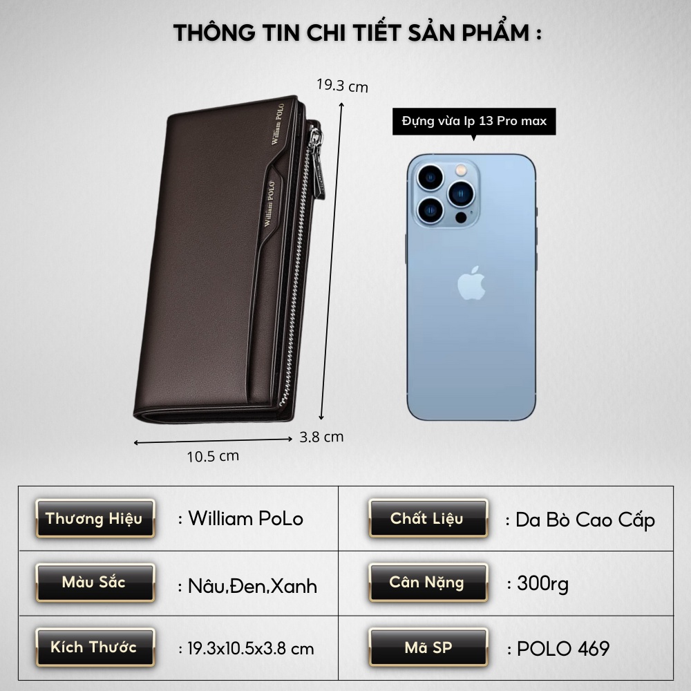 Giới thiệu Ví Dài Nam,Ví Cầm Tay Cao Cấp William POLO,Chất liệu Da Bò thật ,Full hộp đựng -Thiết kế nhiều ngăn,Chống nước- 𝑰𝑩𝑨𝑮