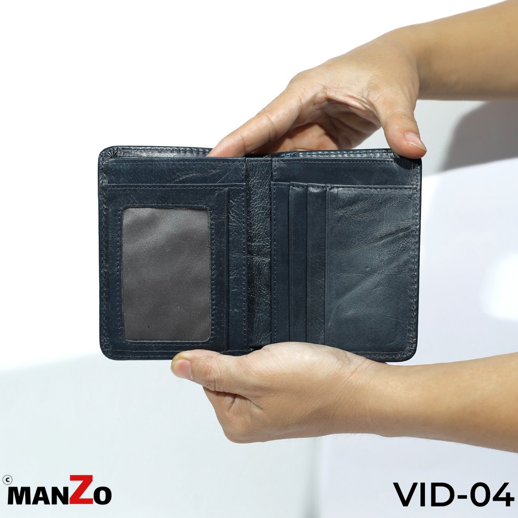 Giới thiệu Ví đứng nam da bò phong cách nam tính mạnh mẽ MANZO VID-04 xanh đậm