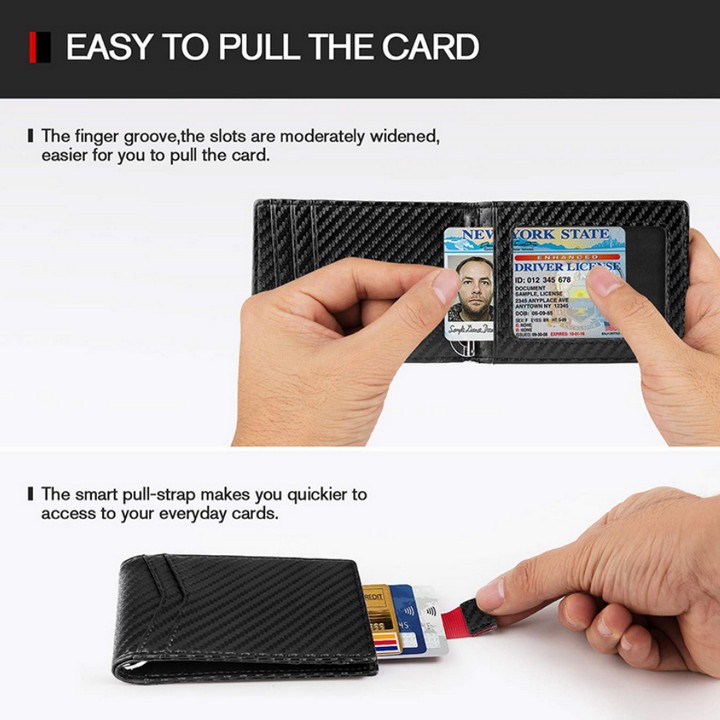 - Kẹp tiền từ tính có dây kéo thông minh giúp bạn truy cập nhanh vào các thẻ hàng ngày của bạn. Khe cắm thẻ với lỗ xỏ ngón tay cái giúp bạn kéo thẻ dễ dàng hơn. Bạn không cần phải dùng hết sức để rút thẻ ra.