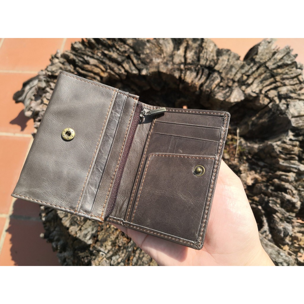 Giới thiệu Ví mini da bò sáp dầu mầu nâu đất VM01 - gọn nhẹ, tiện dụng