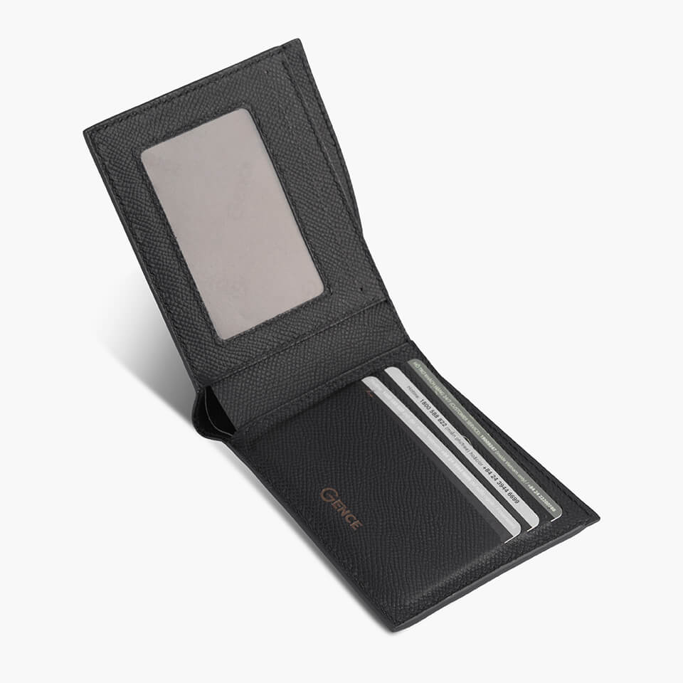 [Handmade] Ví nam da bò Epsom ngăn ảnh màu đen HM04