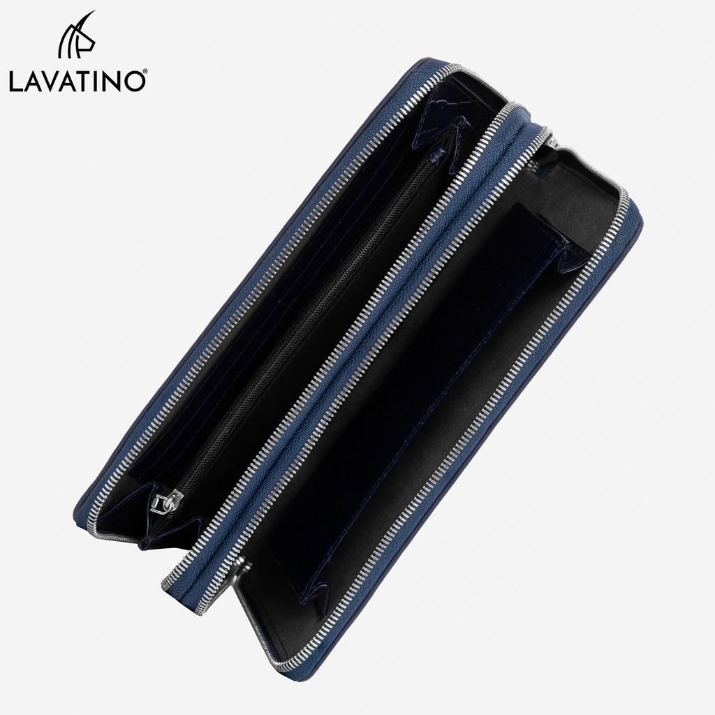 Thông tin về sản phẩm: - 2 Khoá kéo, khoá được nhập khẩu chất lượng cao cấp. - Bên trong ví được lót nhật, giữ form ví vuông vắn mà không hề làm mất đi độ mềm mại của da bò. - Bề mặt được dập nổi vân cá sấu Chất liệu: Da bò cao cấp Kích thước: 24 x 13,5 x 4,5 cm Để được smartphone, các loại giấy tờ lớn / nhỏ - 2 ngăn lớn - 6 ngăn nhỏ - 1 ngăn khóa - 18 ngăn đựng thẻ - Designed by Lavatino
