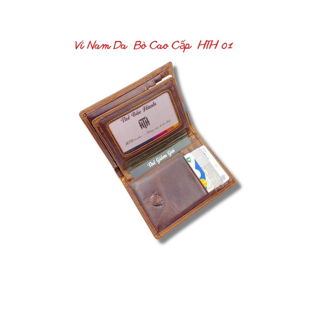 Ví nam da bò sáp cao cấp Hàng Hiệu,Ví da nam bóp nam HTH 01 Dáng Đứng nhiều ngăn ,hộp đi kèm thích hợp làm quà tặng