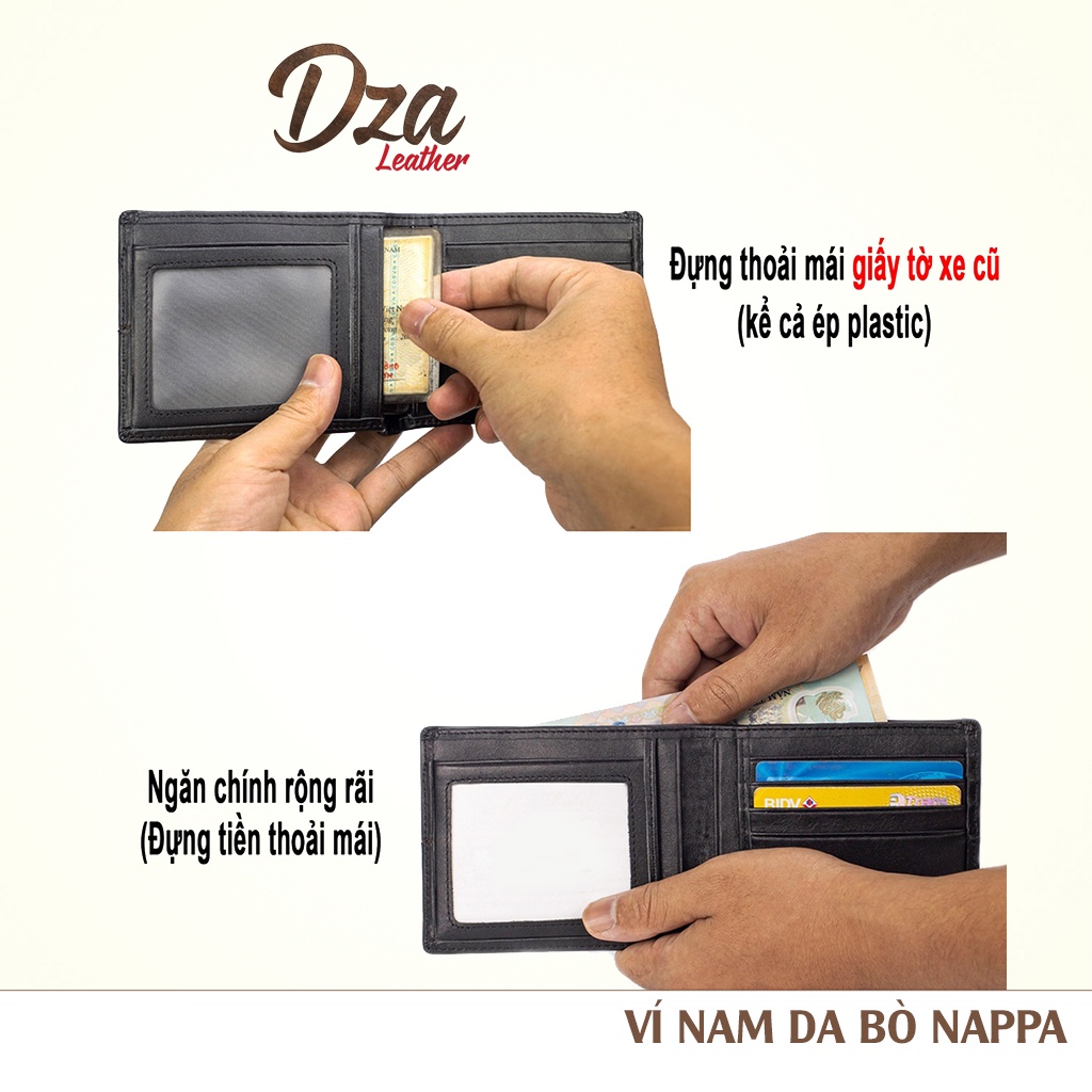 Ví nam da bò nappa cao cấp da mềm mịn, trong lót da heo, bóp nam da bò thật độ bền cao Dza leather