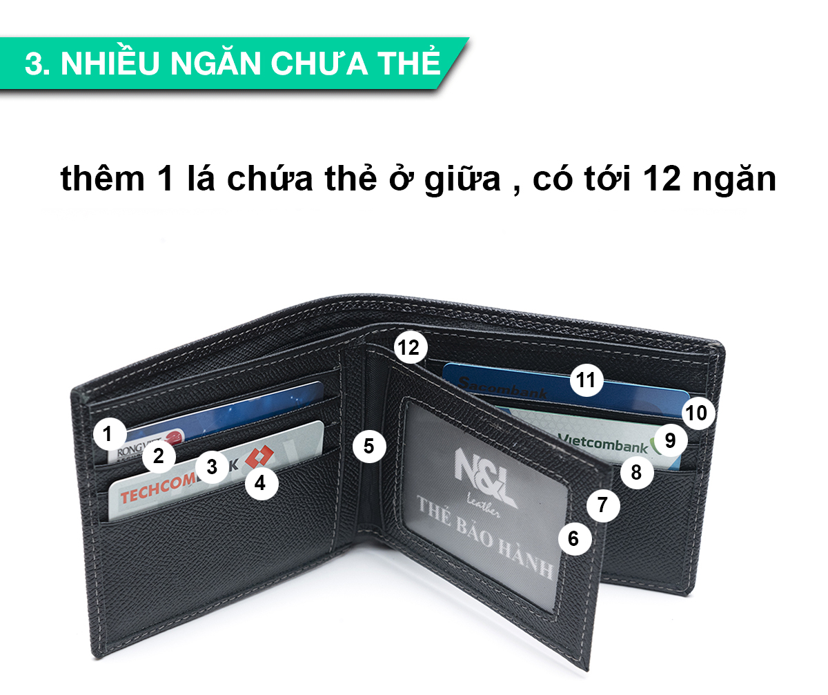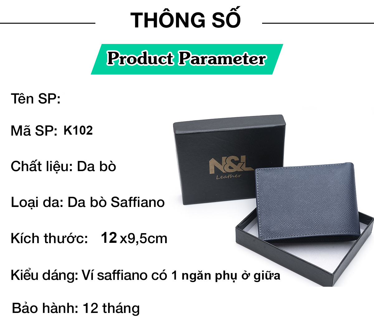 Kích thước | Tên SP: Ví nam da saffiano K102 cao cấp N&L Leather da thật full hộp làm quà tặng bảo hành 24 thángBảo hành: 12 thángChất liệu: Da bò NappaMàu sắc: Xanh navy; đenPhân loại: ngang đen, ngang xanh, đứng đen, đứng xanhKích thước: 12x9,5cmNgăn chính: có 3 ngăn chính, 1 ngăn kéo khoá. Các ngăn được phân chia bằng lót da heo, không sử dụng lót vải (lót vải kém sang, sử dụng nhanh bị sờn)Ngăn phụ: 2 bên có tới 6 ngăn phụ đựng thẻ (step thẻ).2 ngăn to đựng được cả giấy tờ CŨ, cà vẹt xe CŨĐầy đủ hộp làm quà tặng sang trọng.Ưu đãi khi mua hàng từ N&L leather:Freeship+: MIỄN PHÍ giao hàng toàn quốc: đơn từ 149K hỗ trợ tối đa 30K, đơn hàng từ 299k hỗ trợ tối đa 50K...Giảm 10K đơn hàng 299K; 30K đơn 599K… mua càng nhiều giảm càng sâu . Ngoài ra còn nhiều mã giảm giá khác ở các đợt Sale khác nhau (nhớ sưu tầm mã giảm giá trước khi đặt hàng) |
