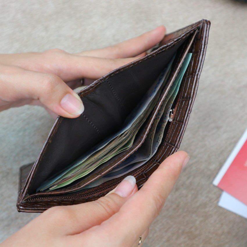 Ví nam đứng da cá sấu 2 mặt Fadoda FCW02BN cao cấp màu nâu vân bụng thiết kế 3 ngăn có khoá