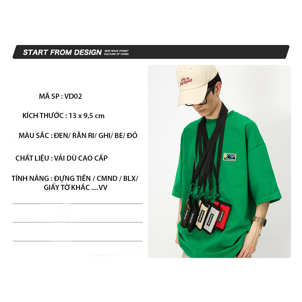 Ví Nam Nữ Mini HEYMISTER Kèm Dây Đeo Cổ Phong Cách Streetwear Unisex Đựng Tiền Và Thẻ ATM, CMND Tiện Lợi