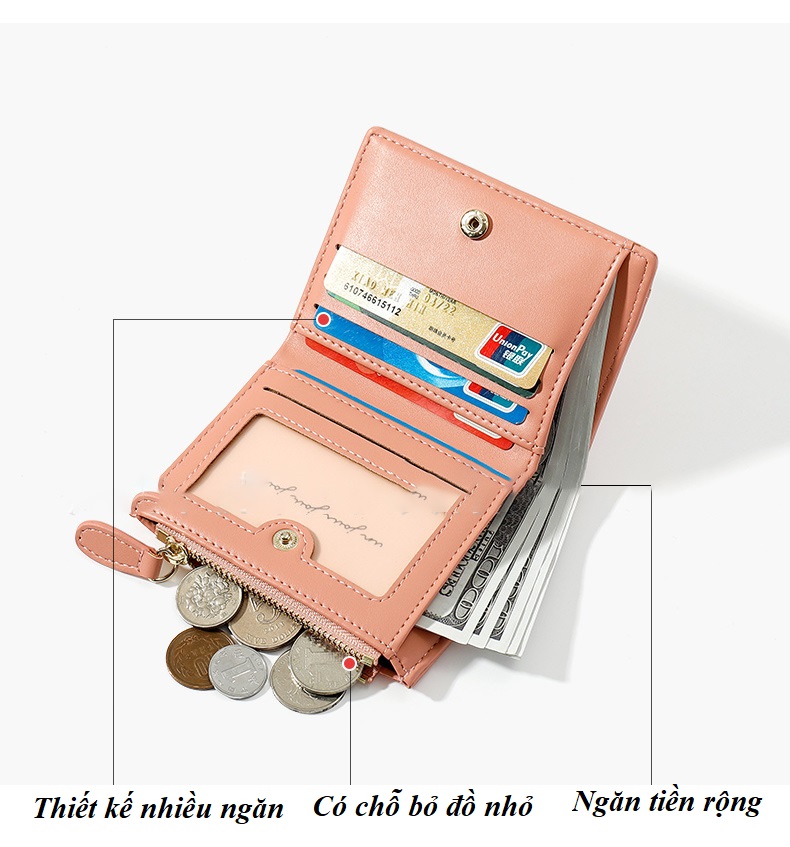 Ví Nữ Bóp Nữ Mini Cầm Tay Nhiều Ngăn, Có Ngăn Kéo