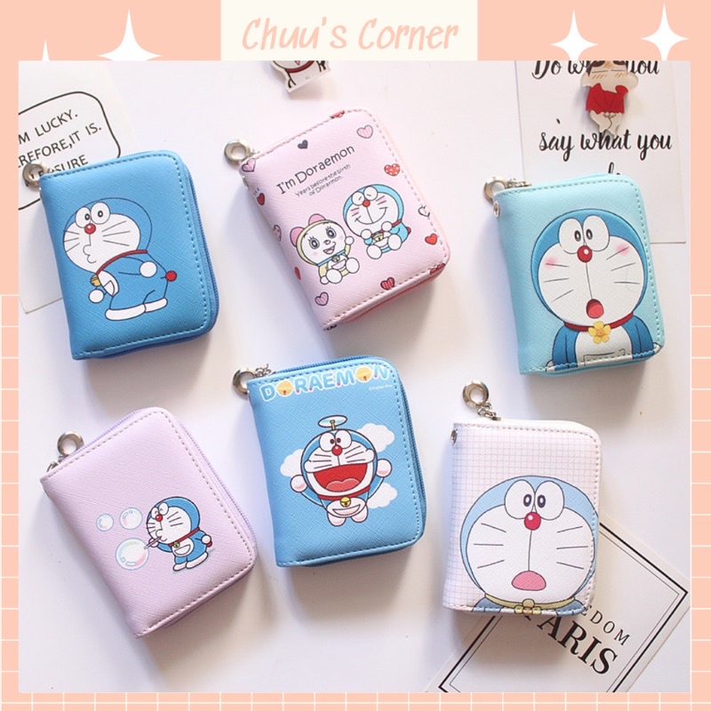 Giới thiệu Ví nữ cầm tay mini nhiều ngăn tiện lợi, hoạ tiết doremon đáng yêu da PU