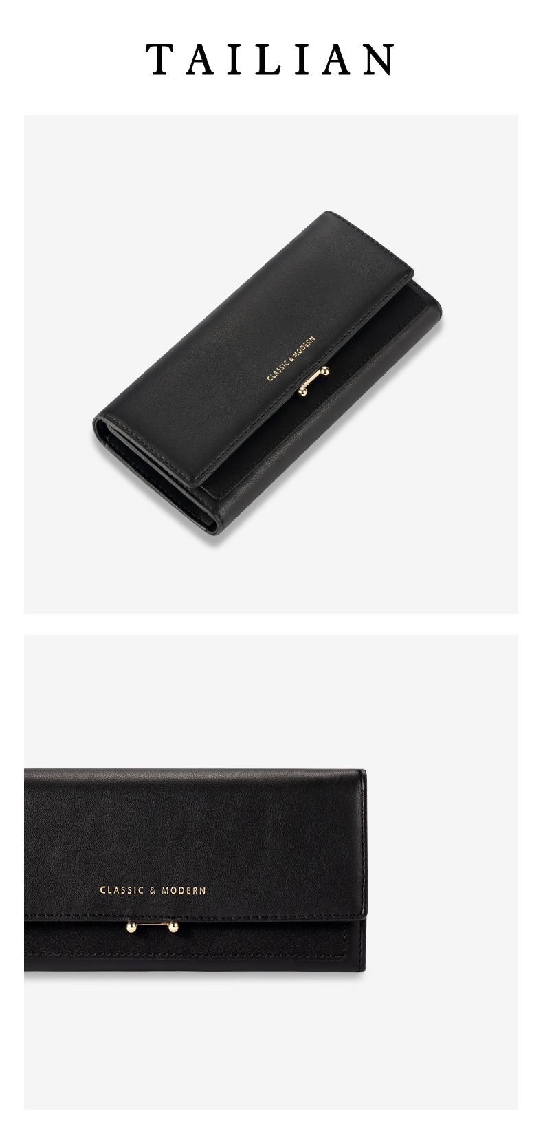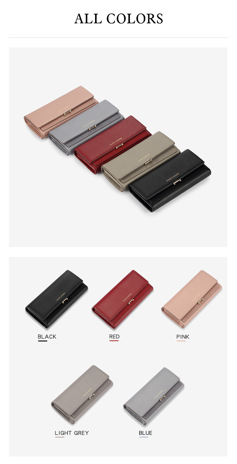 ️ GIẢN DỊ & DUYÊN DÁNG: Chiếc ví thuôn dài hình chữ nhật cổ điển cực kỳ nữ tính với một màu da trơn tinh tế. Điểm nhấn là phần da lộn cùng màu bên trong và hai quả bóng hình cầu mini màu vàng sáng bóng gắn trên phần nắp ví.
