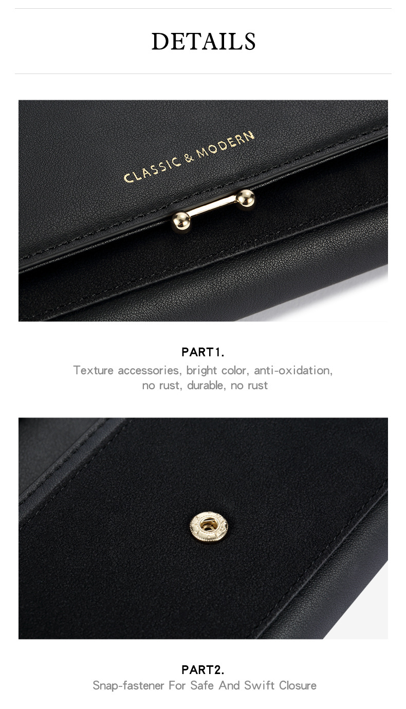 ️ BỀN BỈ & CHẮC CHẮN: Chất liệu chính của ví là da Pu cao cấp dày dặn, mềm mại với độ bền cao. Đường may tỉ mỉ, thẳng đẹp. Khuy cúc bấm rất chắc chắn, dây khóa kéo trơn mượt.
