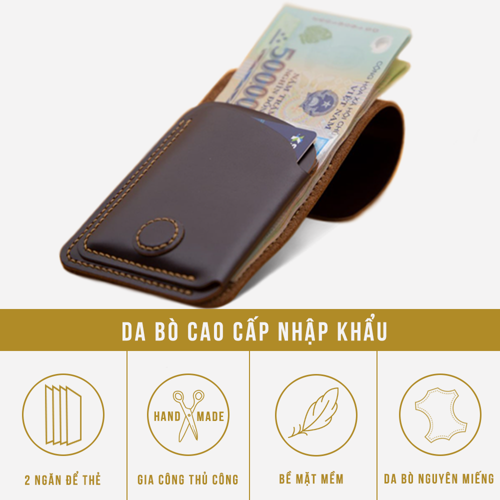 Chất liệu của bóp ví: làm từ da bò thật cao cấp 100%, vô cùng chắc chắn, gọn nhẹ khi cầm trên tay.
