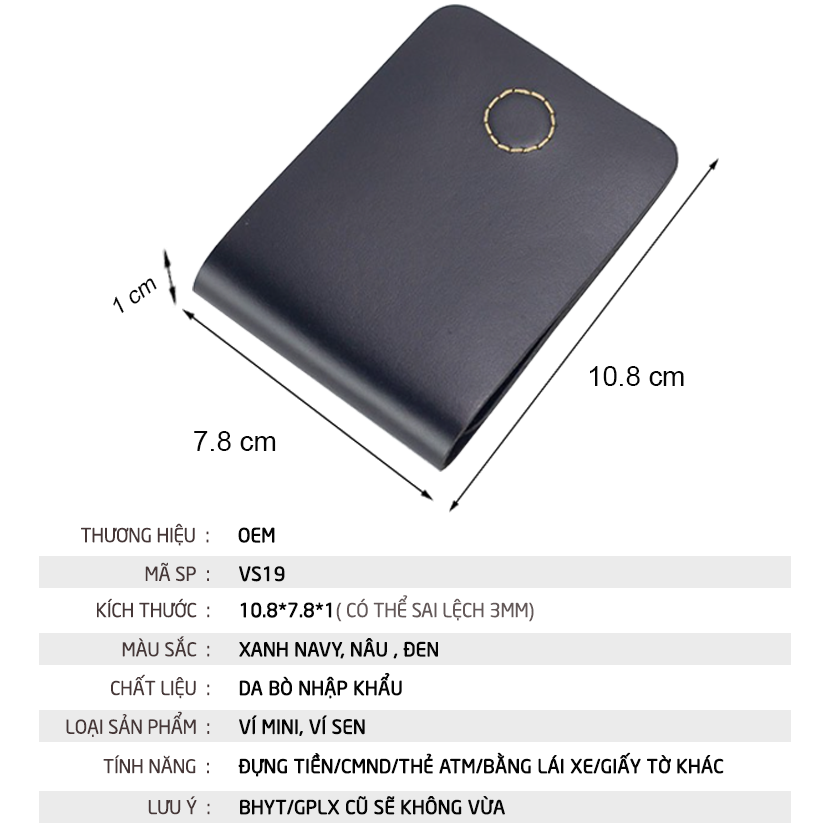 Kích thước gấp ví: 10.8*7.8*1 cm (có thể sai lệch 0.3cm)
