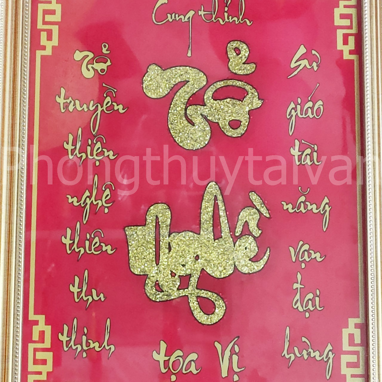 - Chất liệu: Khung thạch cao phủ màu, lưng gỗ cứng chắc, chữ khắc 3D lên mặt kiếng.