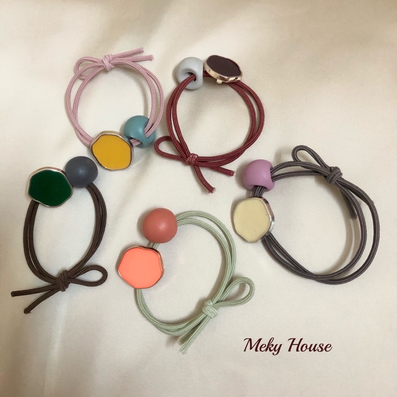 Phụ Kiện Thời Trang > Phụ kiện tóc > Đồ buộc tóc & Nơ || (Video, ảnh thật cuối) Buộc tóc, dây cột tóc nữ cao su gắn đá và hạt cách điệu phong cách Hàn Quốc