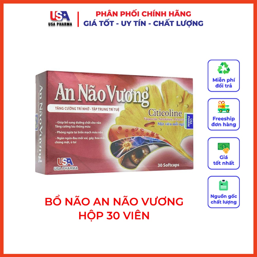 Viên bổ não AN NÃO VƯƠNG giúp tăng cường trí nhớ, tăng tuần hoàn máu não, ngừa tai biến - Hộp 30 viên | MediUSA