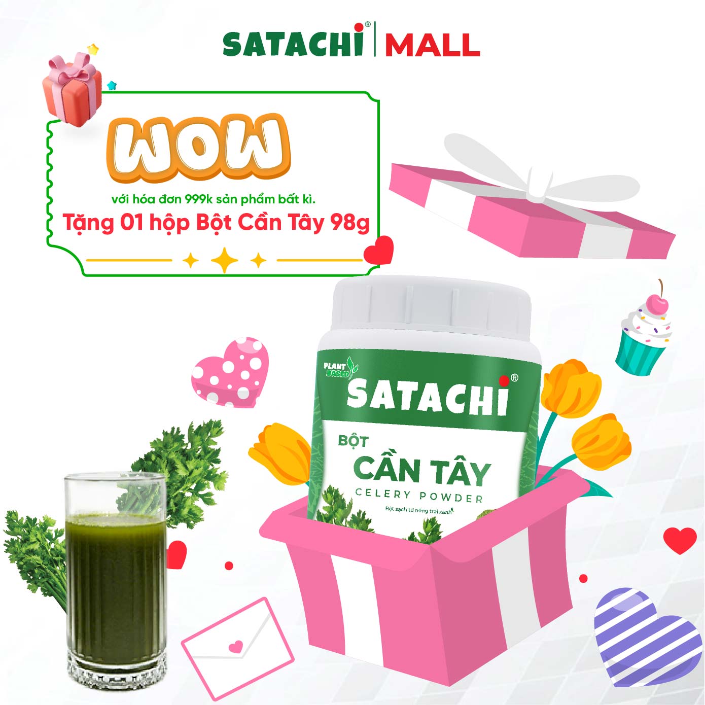 - Với hóa đơn 999K sản phẩm bất kì SATACHI, Quý Khách Hàng sẽ được tặng 01 hộp Bột Cần Tây nguyên chất SATACHI 98g