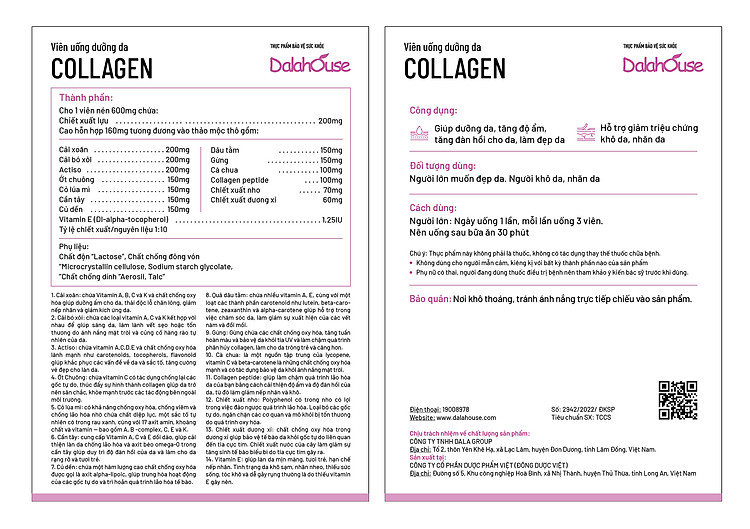 Viên uống Collagen là sản phẩm được Dalahouse cùng các chuyên gia tập trung nghiên cứu trong vòng 2 năm.