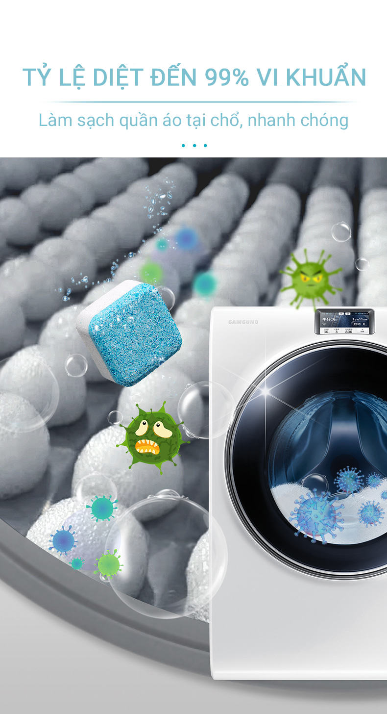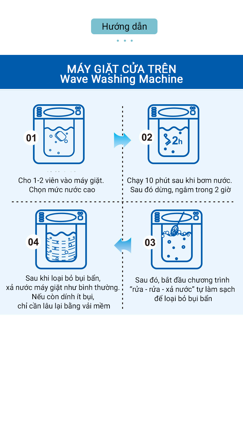 - Viên tẩy có tác dụng diệt khuẩn, tẩy trắng, khử mùi rất hiệu quả giúp quần áo ko bám bẩn hoặc bị nấm mốc.