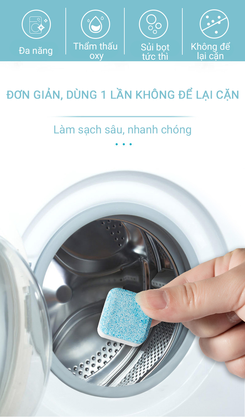Viên Tẩy Lồng Máy Giặt Khử Sạch Cặn Bẩn, Vệ Sinh Máy Giặt Diệt Khuẩn Và Khử Mùi Lồng Máy - Đa Năng Phù Hợp Sử Dụng Cho Nhiều Loại Máy Giặt