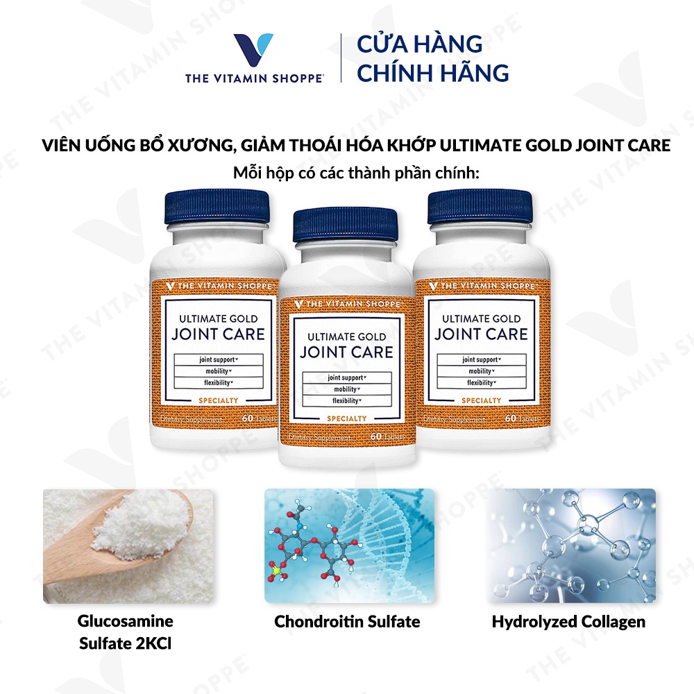 Giới thiệu Viên uống giảm đau xương khớp, thoái hóa khớp The Vitamin Shoppe ULTIMATE GOLD JOINT-CARE 60 viên