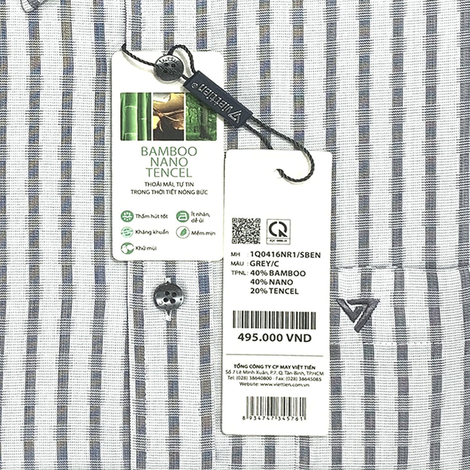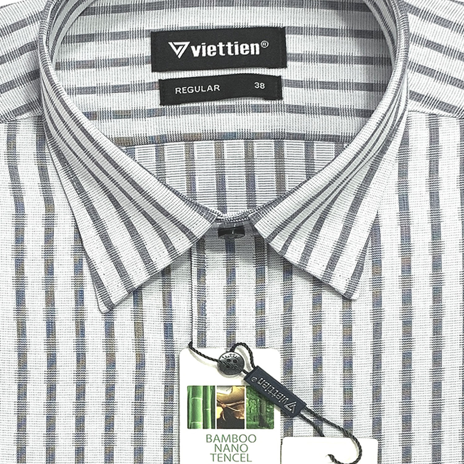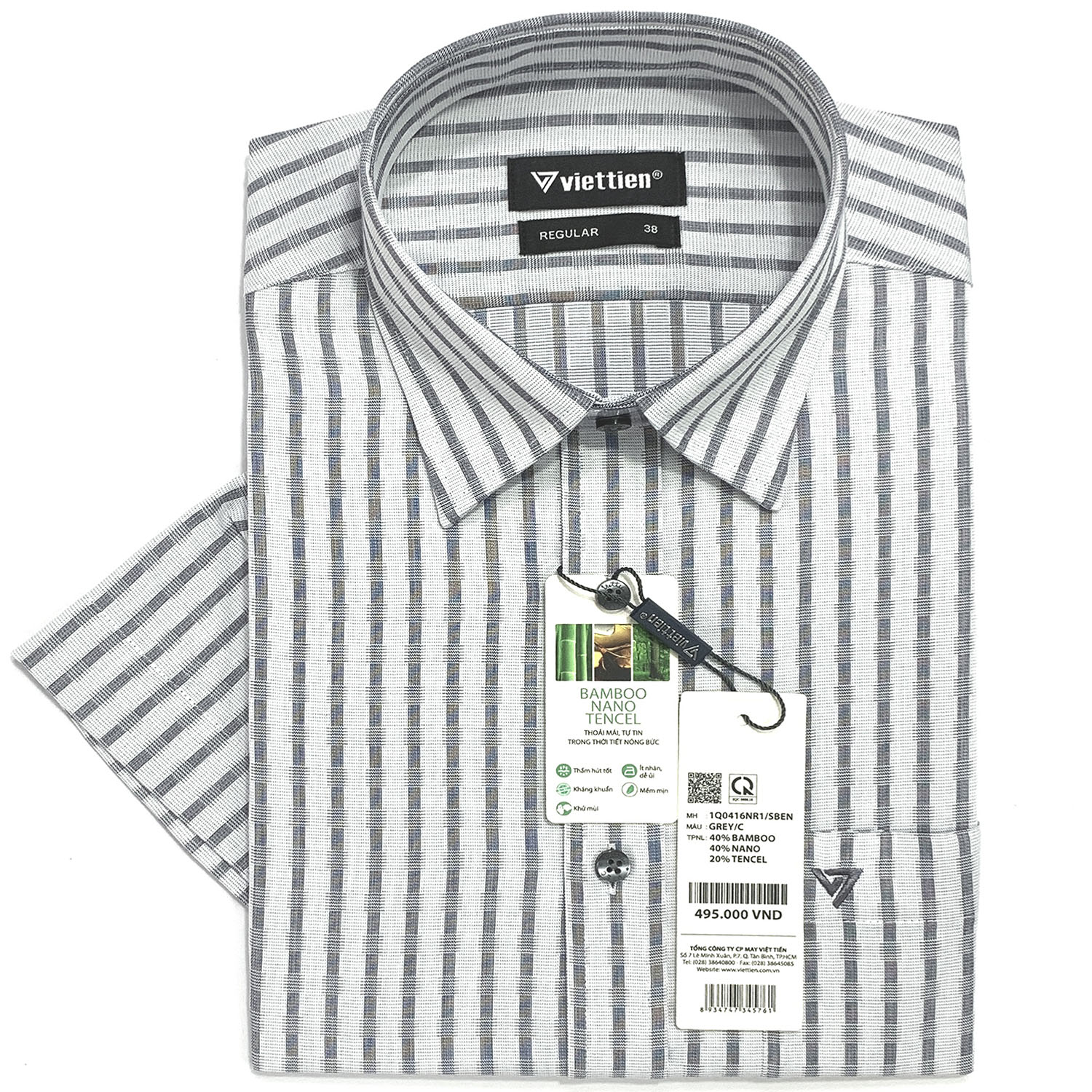 Viettien - Áo sơ mi nam ngắn tay ca rô 1Q0416 regular dáng rộng chất liệu sợi tre kết hợp nano - tencel