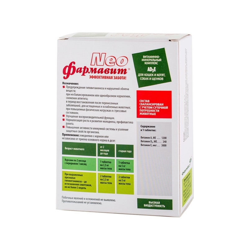 Farmavit Neo là một phức hợp vitamin được lựa chọn có tính đến các đặc điểm của mèo con và chó con.