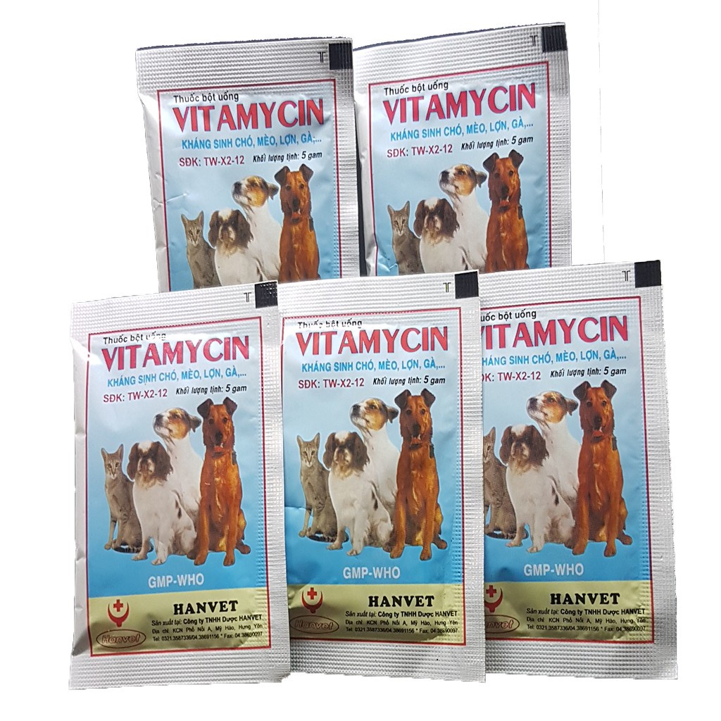 Giới thiệu Vitamycin gói 5gr Kháng sinh chó mèo - đi ỉa chó kiết lị chó dạng uống