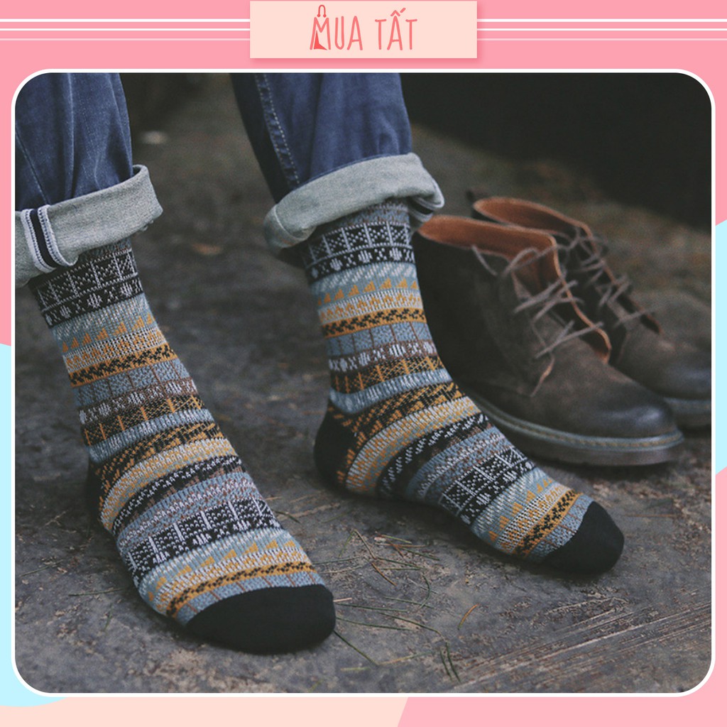Vớ dài/ tất dài họa tiết thổ cẩm tam giác nhỏ Mua Tất unisex (muatatshop)